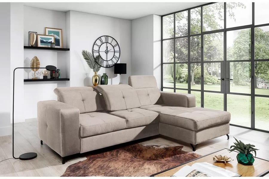 Купить диван тканевый угловой Рейн Laurel бежевый (Велюр + Экокожа) по