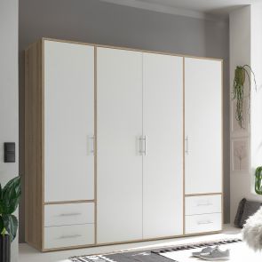 ДВУКРИЛ ГАРДЕРОБ СУБИТО С ДВЕ ПЛЪЗГАЩИ ВРАТИ ДЪБ СОНОМА И БЯЛО 181/61