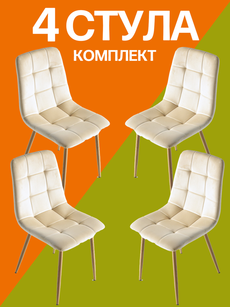 Комплект кухонных стульев из 4 предметов с мягкой спинкой, бежевый