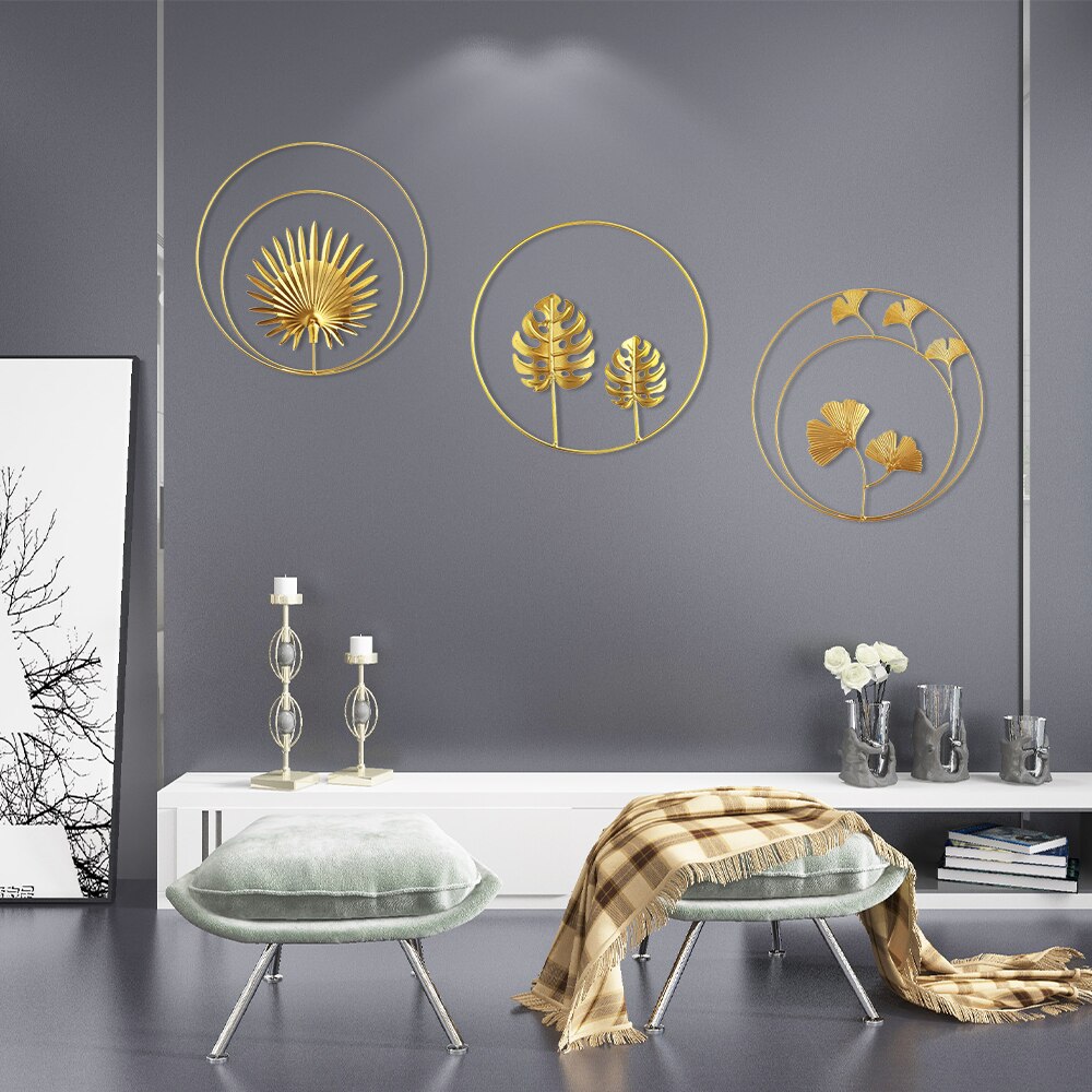 Комплект 3 декорации за стена MzoLife, Желязо, Златист