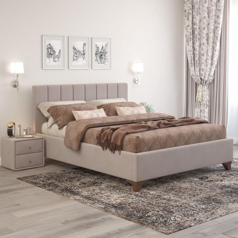 🏆160Х200 кровать Оливия с подъемн( ткань,беж)🏆