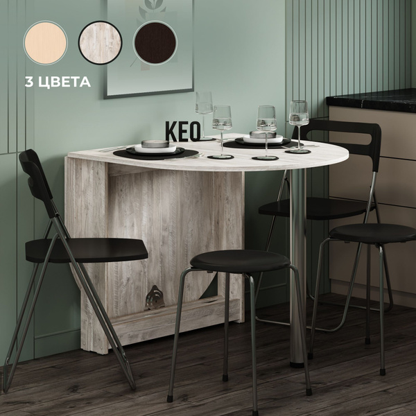 Стол обеденный Кео Раскладной СП-12_Беленый дуб, 90х86х75 см