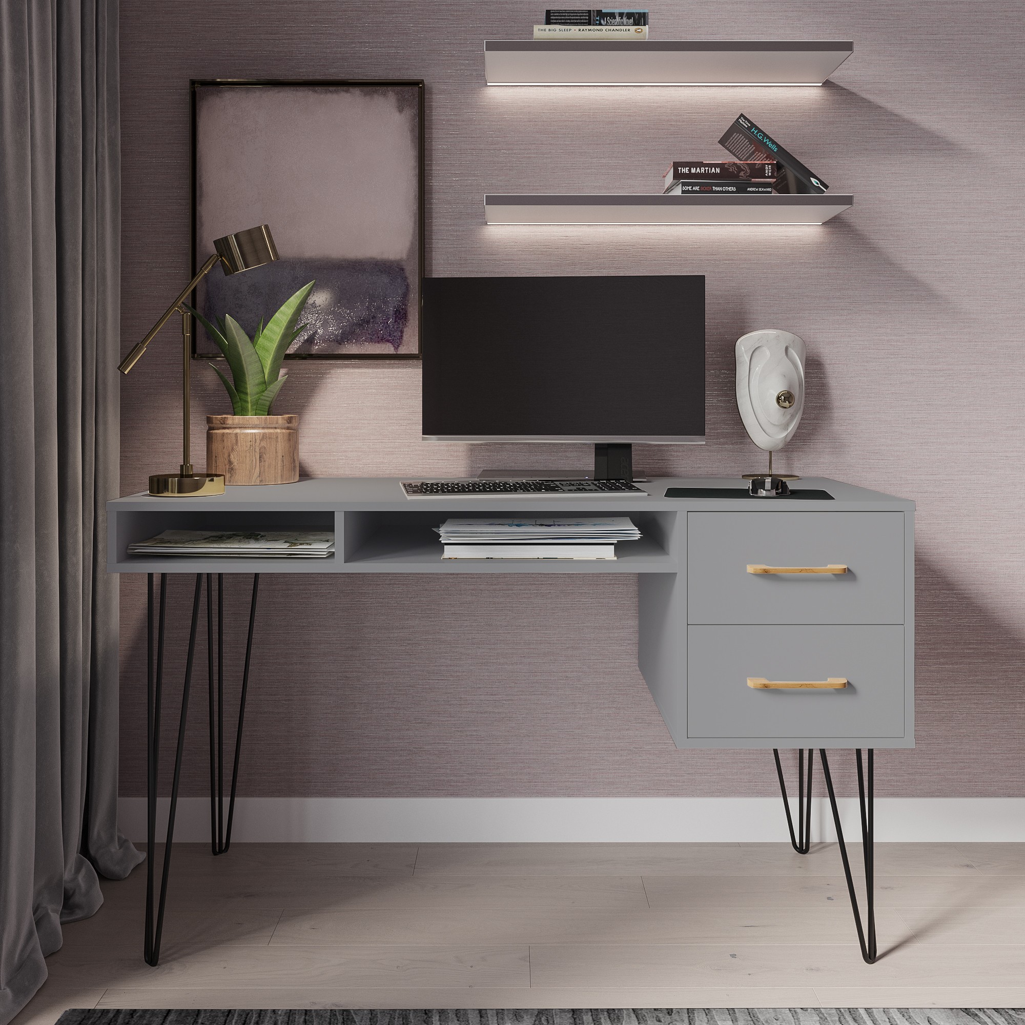 Стол письменный Кассия Серый / Дуб вотан купить в Москве