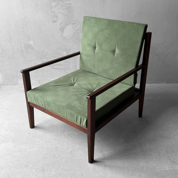 Зеленое кресло винтажное ретро из массива дуба (72 фото)