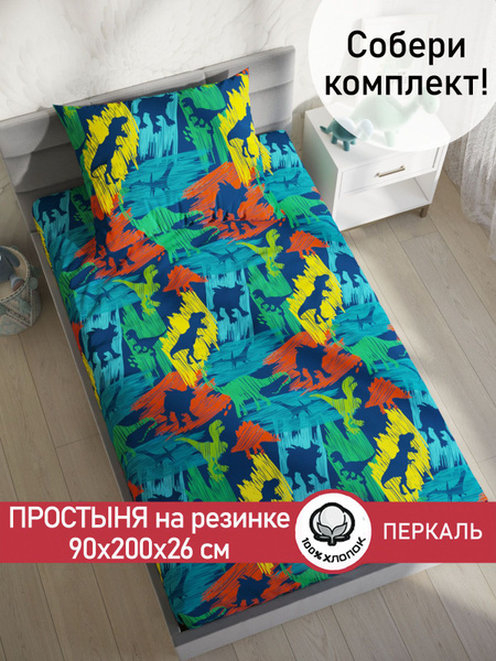 Простыня Сказка Дино натяжная на резинке, 90x200, синий купить по