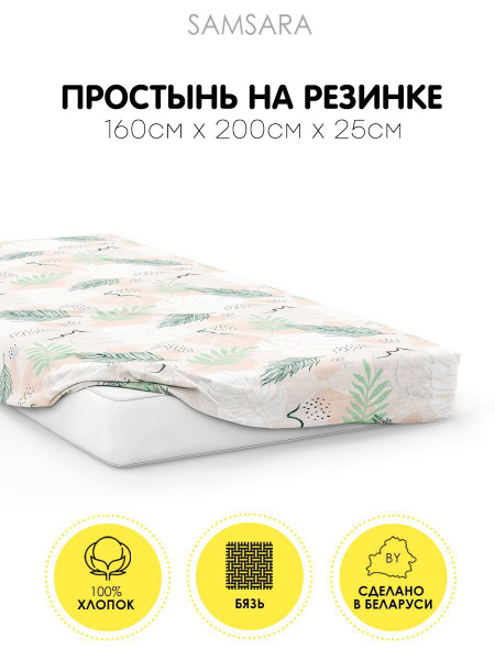 Простыня Samsara 160Пр, 160x200, светло-бежевый, белый купить по низкой